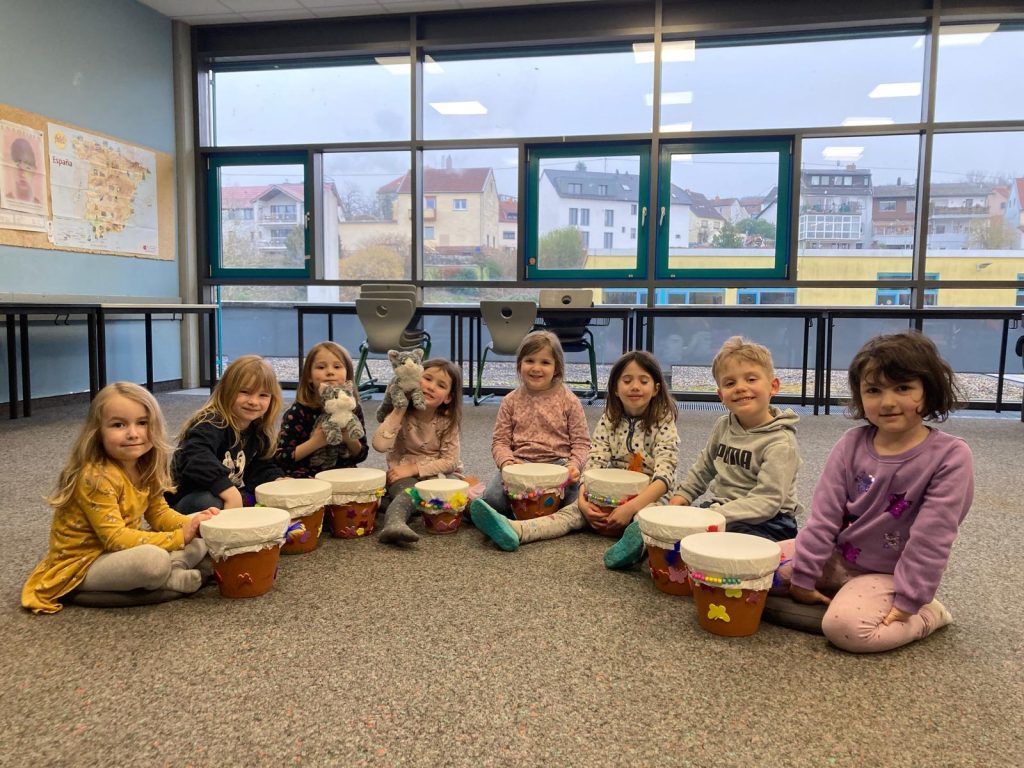 In Gruppen von 8 bis 12 Kindern vermitteln wir Inhalte aus den Bereichen Singen und Sprechen, Bewegung und Tanz, Musikhören, Instrumentenbau und das Spielen mit den Orffschen Instrumentarium. Daneben haben die Kinder die Gelegenheit, die unterschiedlichsten Instrumente kennen zu lernen.